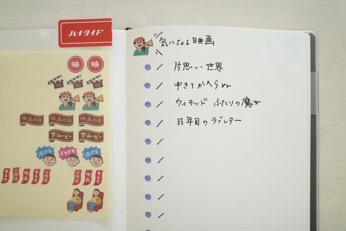 こちらは、レトロで味のあるイラストに心惹かれる「ニューレトロ」のシール。今回のセットアップでは、気になる映画リストにぴったりな「映画」という種類を使用しました。
