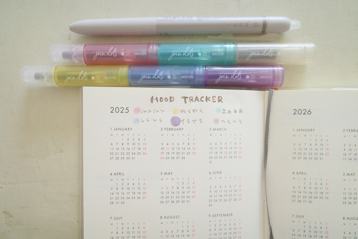 最後にご紹介するのは、手帳の巻頭に記載されている年間ページ。こちらは、その日の気分を記録する「ムードトラッカー」として使うことにしました。