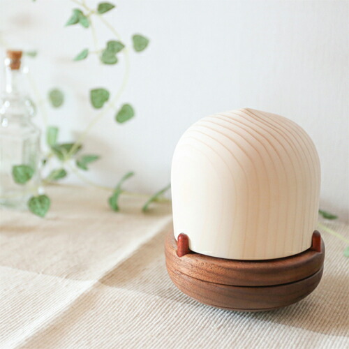 明りを灯すと、木目を通して温かい光が溢れだします。このランプにスイッチはなく、どんぐりのどこかに触れるだけで明りが灯るようになっていて、小さな子供でも簡単につけられます。
