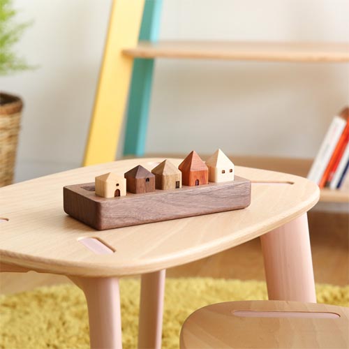 遊んだあとも片づける必要がなく、そのままおしゃれなインテリアとして飾れる点もポイント。カラフルな街並みは着色を一切せず、素材本来の色を楽しめるようになっています。