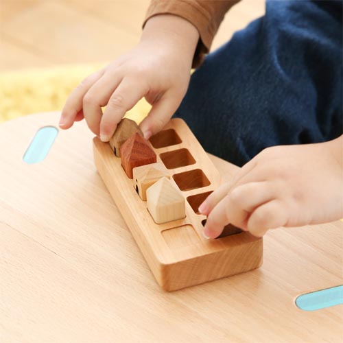 一見簡単そうに見えるこちらのパズルですが、木肌がスルスルと滑りやすくつまみにくくなっています。子供だけでなく、大人や年配の方も夢中になって楽しめるようになっていますよ。