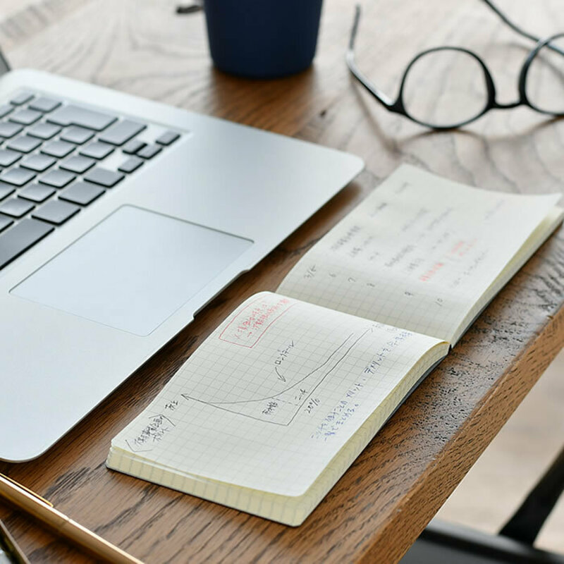 そこでおすすめしたいのが、狭いデスク前でも快適に広げられる「isshoni. ノート」。一般的なノートとは違い、横長のフォルムが特徴的です。