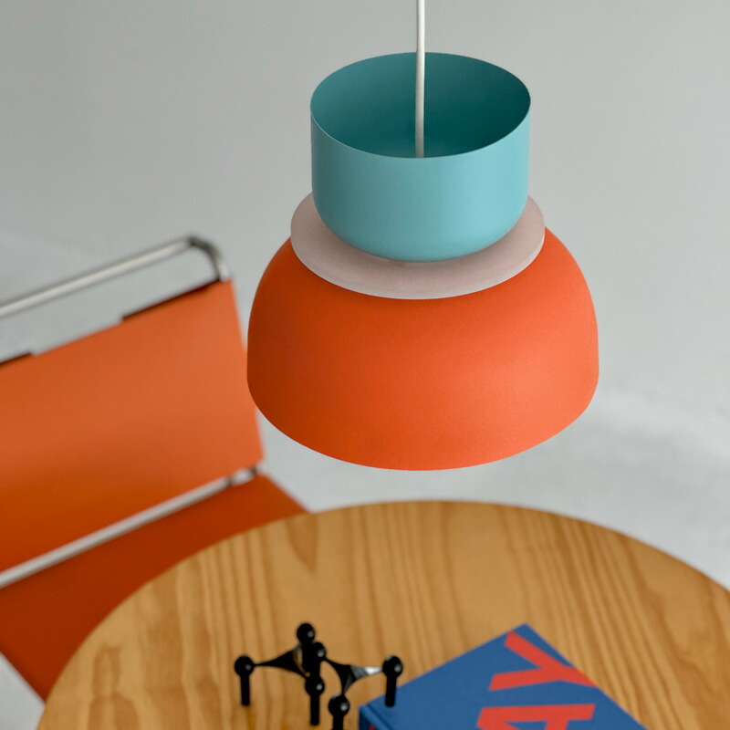 こちらの存在感抜群のペンダントライトは、一つ吊るすだけで空間がパッと明るくなり心躍るインテリアに。オレンジとライトブルーのバイカラーの他にもイエローとライトブルーのバイカラーがあり、どちらも洗練された空間を作ってくれます。
