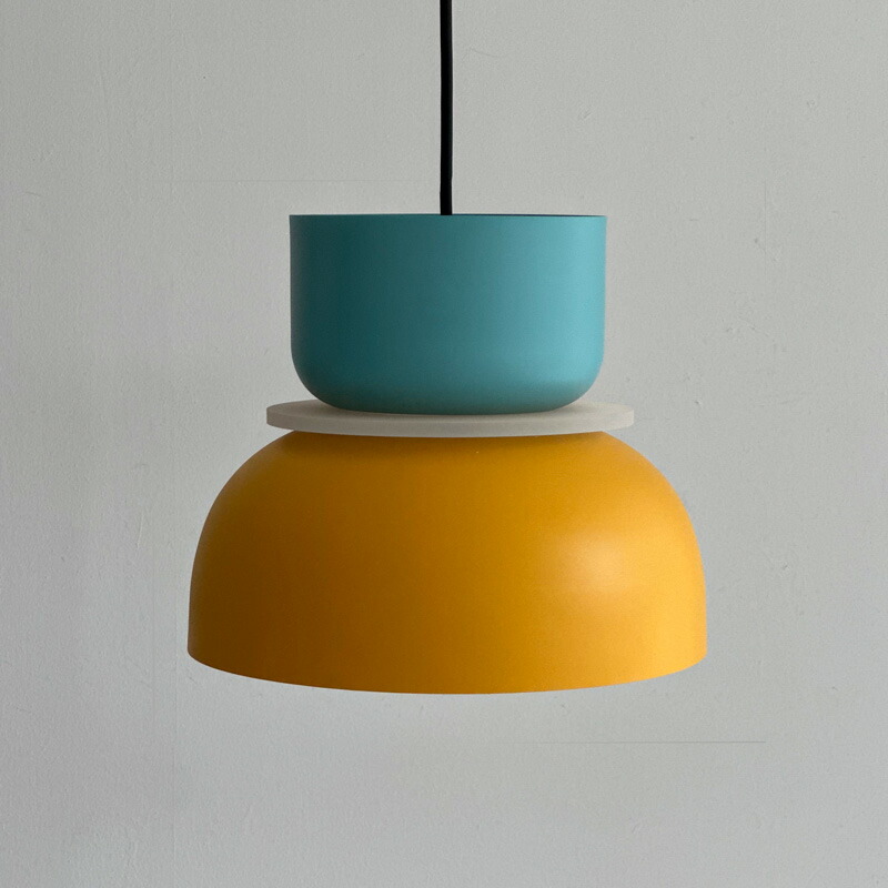 最後にご紹介するのは、ポップなカラーとボウルを上下対につなげたようなシルエットがかわいい「ART OF BLACK(アートオブブラック)」の「バイカラーボウルシェードペンダントライト」。