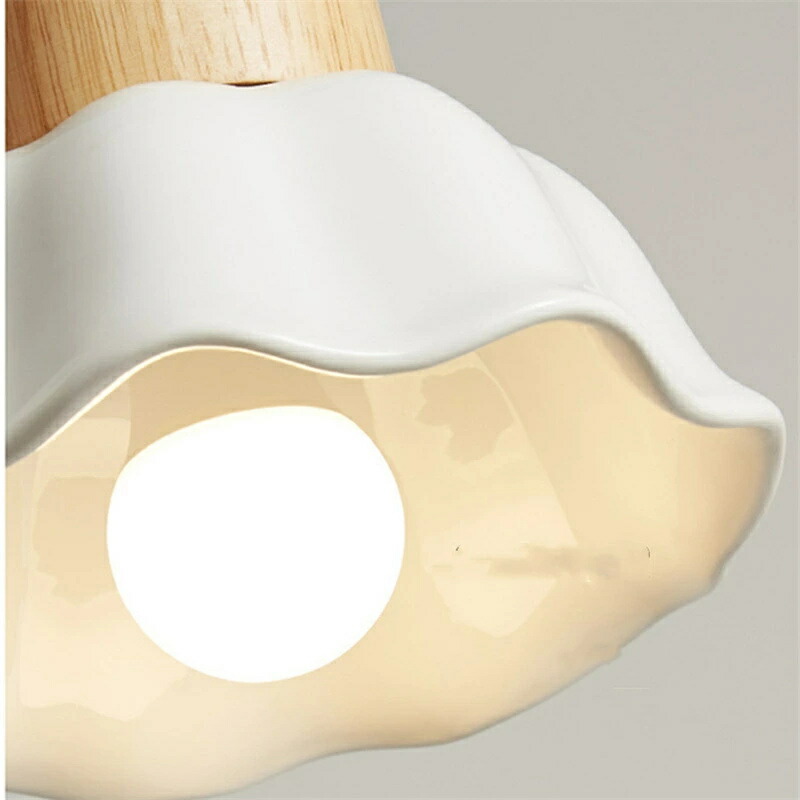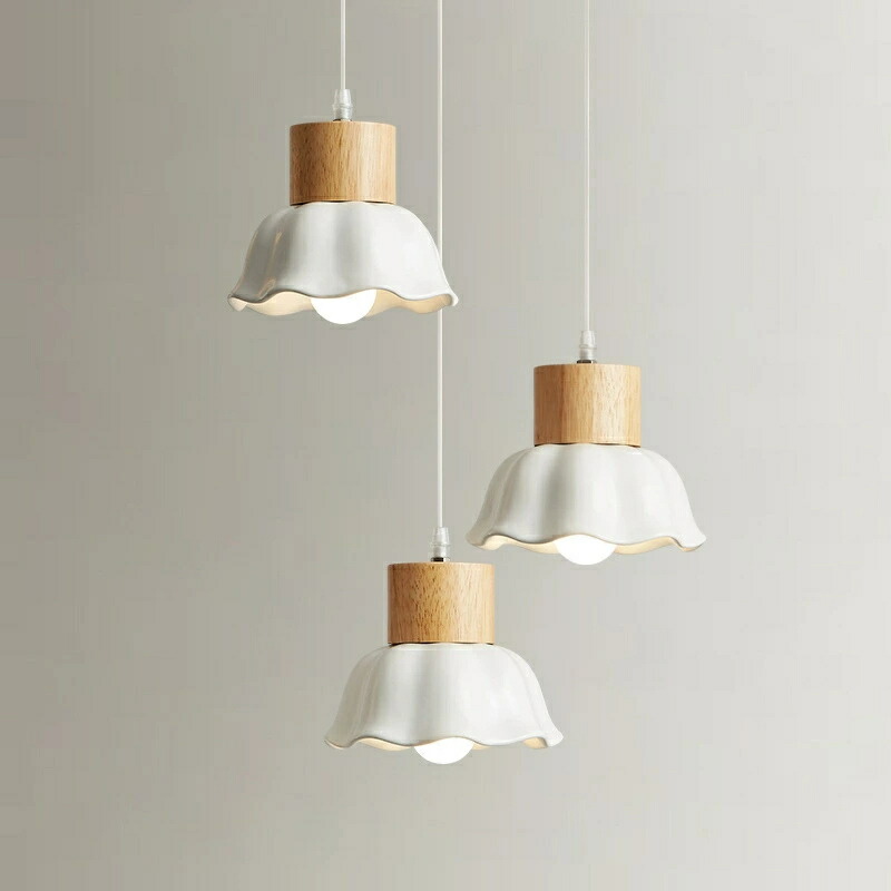 花びらのようなかわいい陶器のシェードと木製のソケットが◎