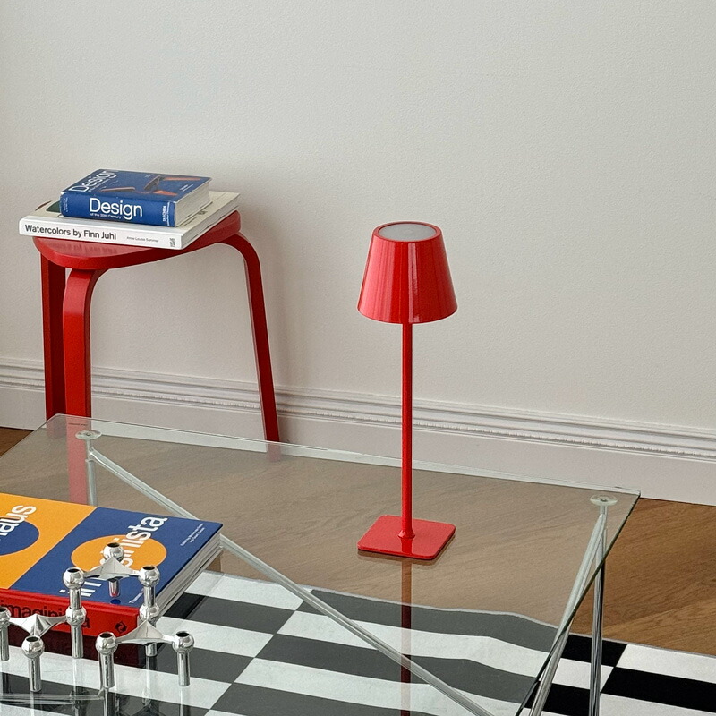 充電式のコードレスでコンパクトなデザインは、ちょっとしたスペースにもスマートにセットできます。簡単に移動できるので、気分で動かしたりとコーディネートも楽しめそう。ワンタッチで点灯でき、長押しすると光の強弱が調整できるなど機能性にも優れています。
