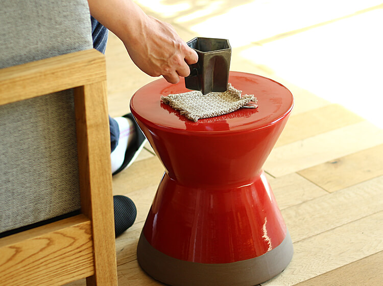 また陶器は、しっかりと重さもあり屋外での使用にも適している素材なので、庭やテラスのインテリアにもおすすめ。スツールとしてだけでなく、サイドテーブルやガーデンラックとしても活躍します。一台で何役もこなしてくれる、おすすめの赤いインテリアアイテムです。