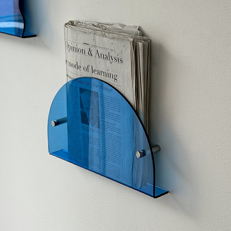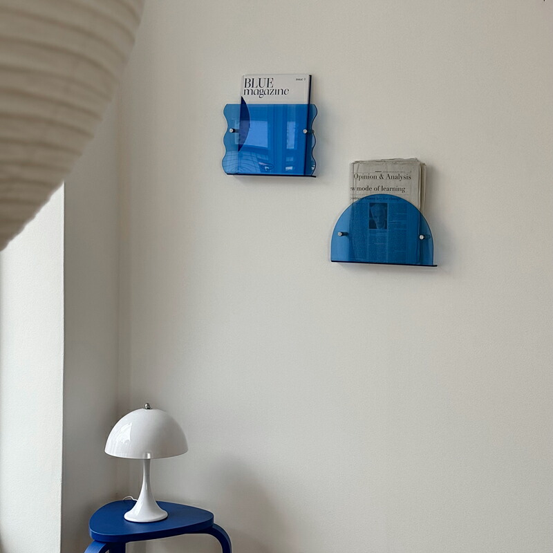 アクリル モチーフデザイン ブルー ウォールマガジンラック