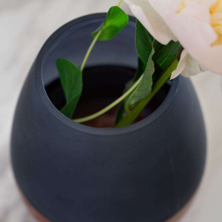 こちらは、マットな質感とぽってりとしたやさしいシルエットに癒される、「Elements(エレメンツ)」のフラワーベースです。ボトムのコッパーカラーがアクセントになり、やさしさの中に重厚感もあるデザインになっています。