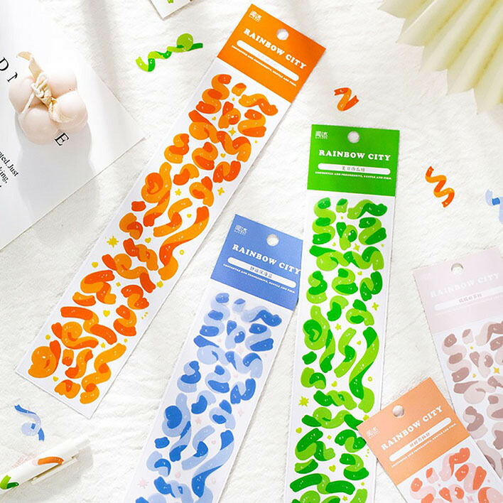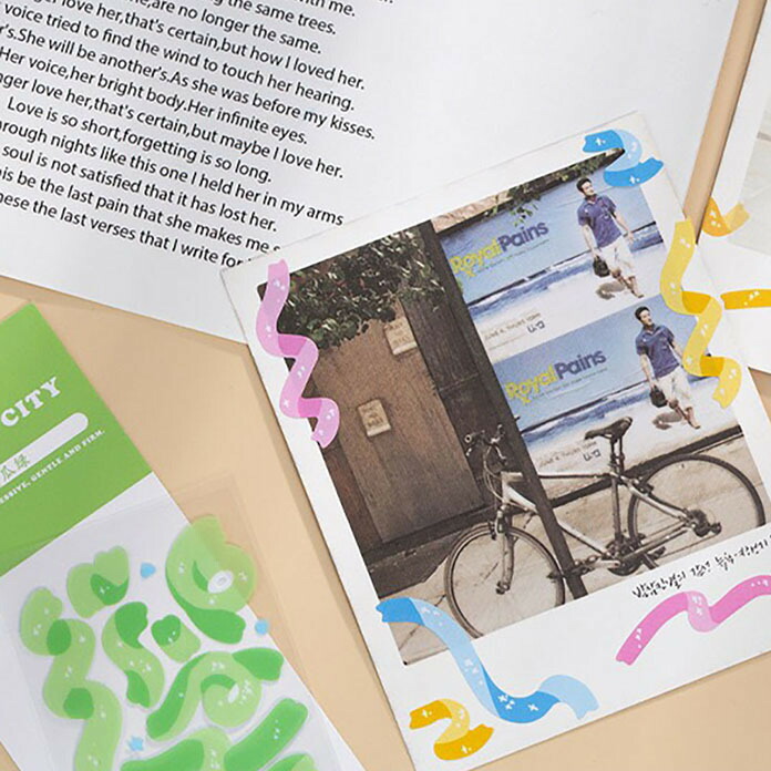 こちらは、ページを華やかに彩ってくれるリボンモチーフのシール。ゆるっとデザインされたリボンはさまざまな形があり「このスペースに合うのはどのリボンかな」と考えるのも楽しいアイテムです。