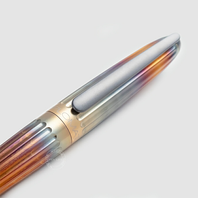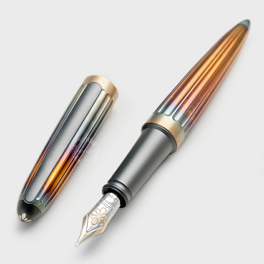 「アエロ」シリーズのなかでも一際目を引くデザインである「フレイム」が有するあたたかみのあるオレンジ色は、金属のボディをバーナーで焼くことで表現。一つひとつで絶妙にデザインや配色が異なるため、あなただけの一本と出会えるでしょう。