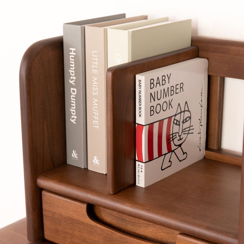 こちらは重厚感と上品さが人気の、引き出し付きブックスタンドです。コンパクトサイズで、机に置きやすいデザインになっています。子どもの学習机に設置することを想定して作られた卓上収納で、しっかりした作りが魅力ですよ。