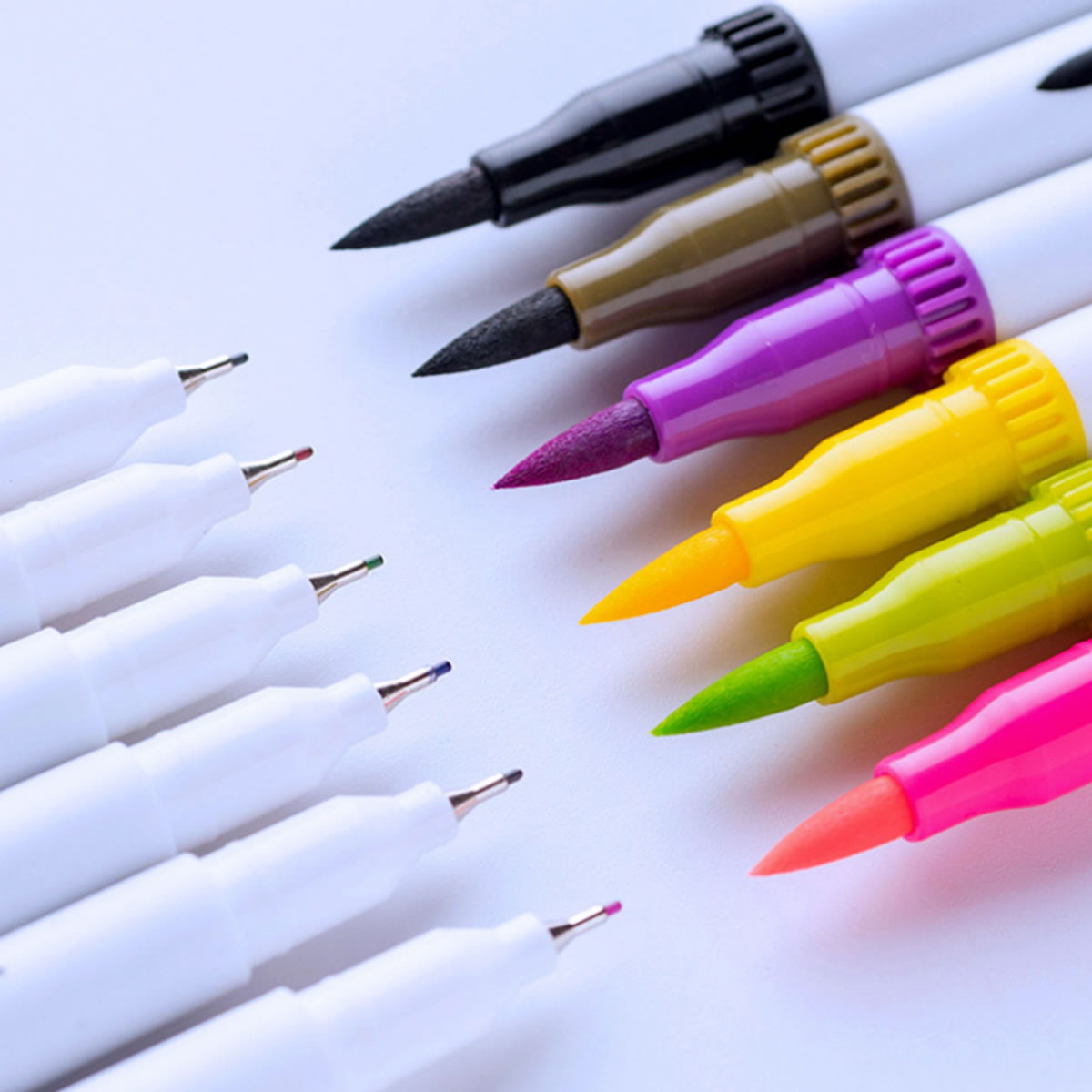最初にご紹介するのは、0.4mmの細字マーカーと1~2mmの軟筆筆ペンが一緒になったカラー筆ペンです。2種類の筆先を使いこなせば、いろいろなタッチのアートを味わえます。