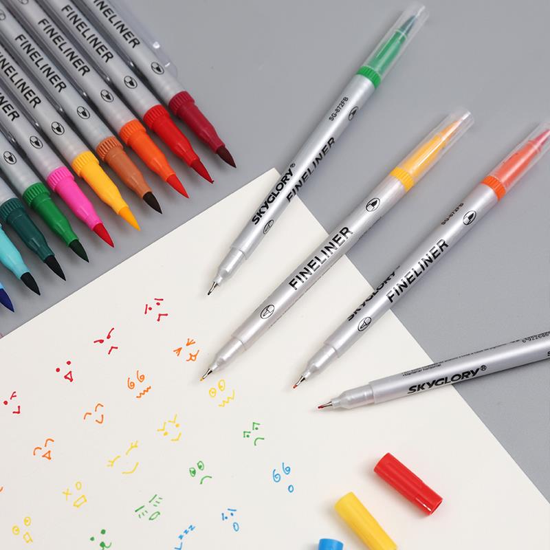こちらは、本格的にイラストや絵画を楽しみたいという方におすすめのカラー筆ペン。水彩画のような濃淡が表現できる軟筆と、細かい塗りに適した極細が一緒になったダブルヘッドです。