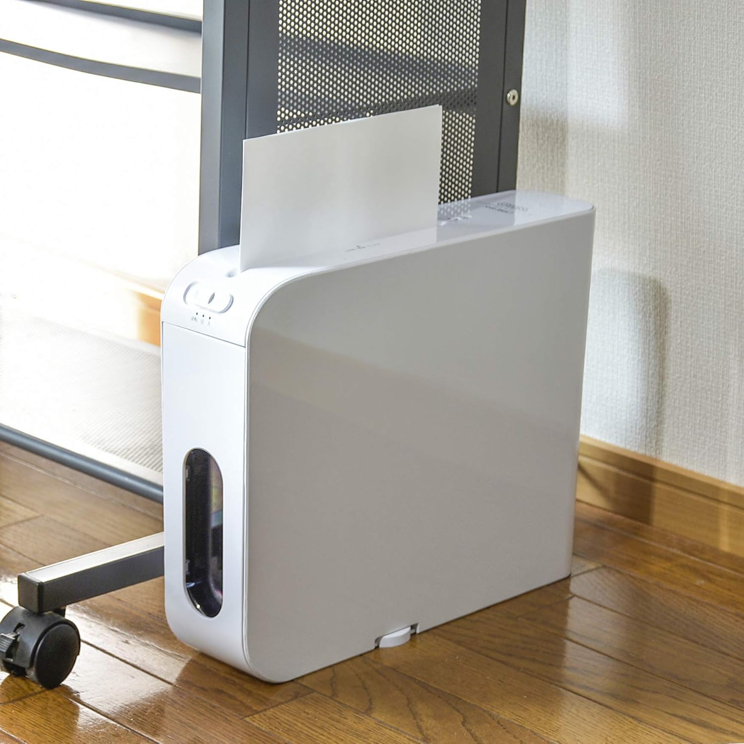 シュレッダーにしては珍しく、本体にはダストボックスは付いていないのが特徴。本体の背面フックや側面ワイヤーを活用して、お部屋のゴミ箱などに直接取り付けられるので、細断くずをダイレクトにゴミ箱へ捨てられます。筆者のようなズボラさんにも大変おすすめなアイテムです。