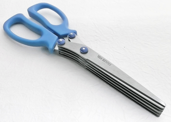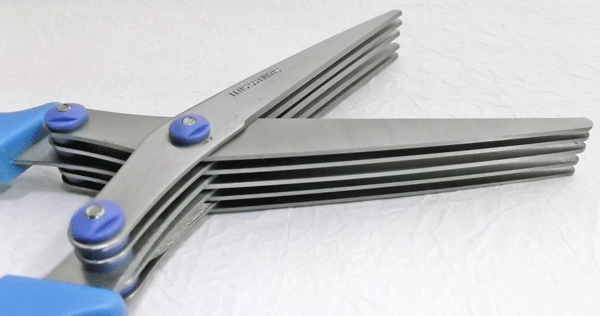「シュレッダーハサミ」は、ハサミタイプの手動式シュレッダー。5枚の刃が同時に動くことで分厚い紙もスパッと細断できます。縦と横のそれぞれにハサミを入れることで、クロスカットも可能です。