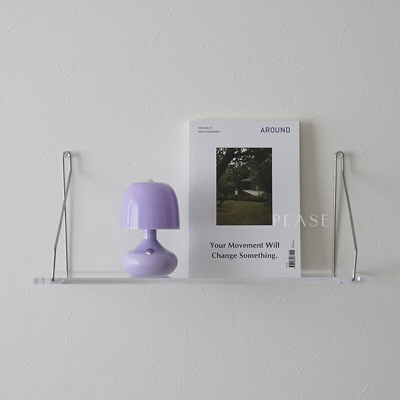 ランプが点灯すると、パステルカラーの紫色が甘くやさしい色合いを滲ませます。ぽってりとしたかわいいフォルムも相まって、灯りを眺めているうちに夢見心地に浸れそう。