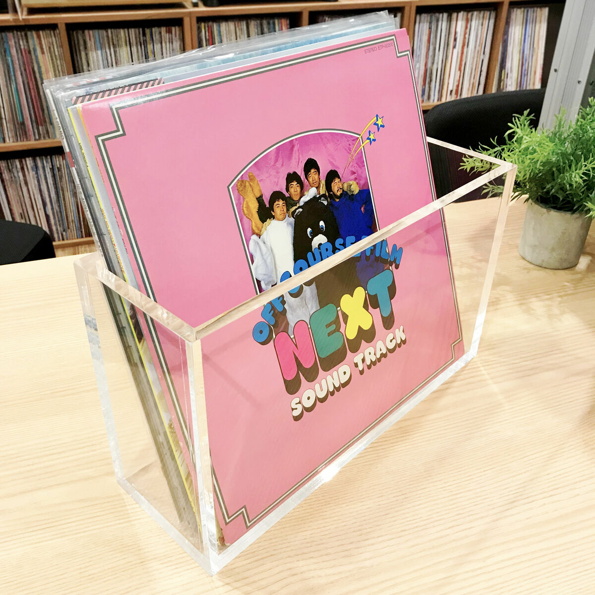 こちらのアクリルのラックには、LP盤のレコードを最大20枚まで収納可能。ラックの高さをあえて低く設計して、レコードを取り出しやすくしています。レコードのジャケットのデザイン性を損ねることなく、機能性にも優れたアイテムです。