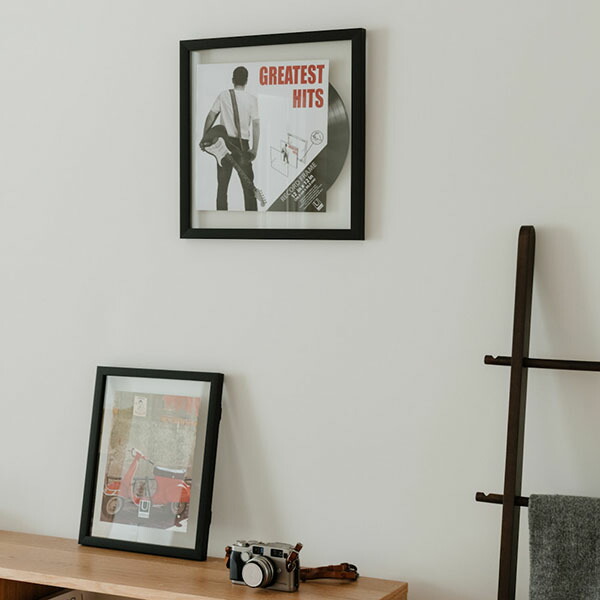 最初にご紹介するのは、ジャケットとレコードを一緒に飾れるフレーム。シンプルな木製のフレームには、レコードとジャケットが一緒に飾れます。まるで絵画を壁に飾るように、レコードをインテリアにプラスできますよ。