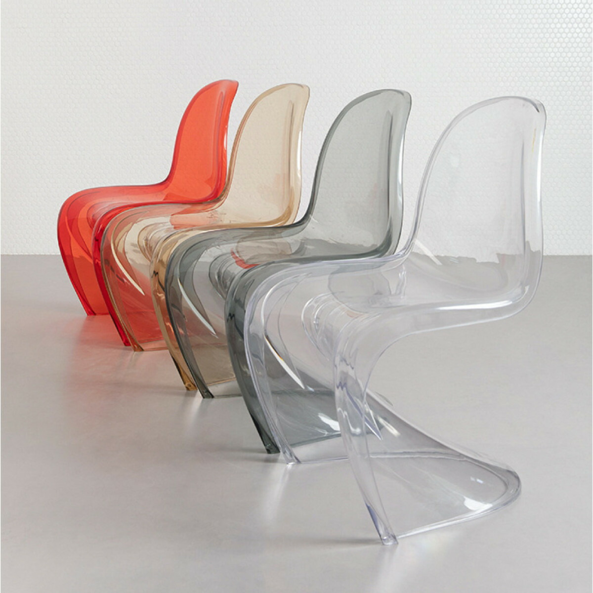 カラーはレッド、ブラウン、グレー、クリアの4種類から選べます。他のインテリアとなじませたい場合にはクリア、アクセントとして目立たせたい場合にはレッドを選ぶといいかもしれません。より面白さを出すのであれば、4種類全部を手に入れてダイニングテーブルを囲んでしまってもいいですね。