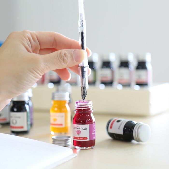 こちらは豊富なカラーバリエーションが魅力の、老舗ブランド「J.HERBIN(エルバン)」の「トラディショナルインク」。10mlサイズのインクボトルはとてもコンパクトで、ペンケースに入れやすいサイズです。