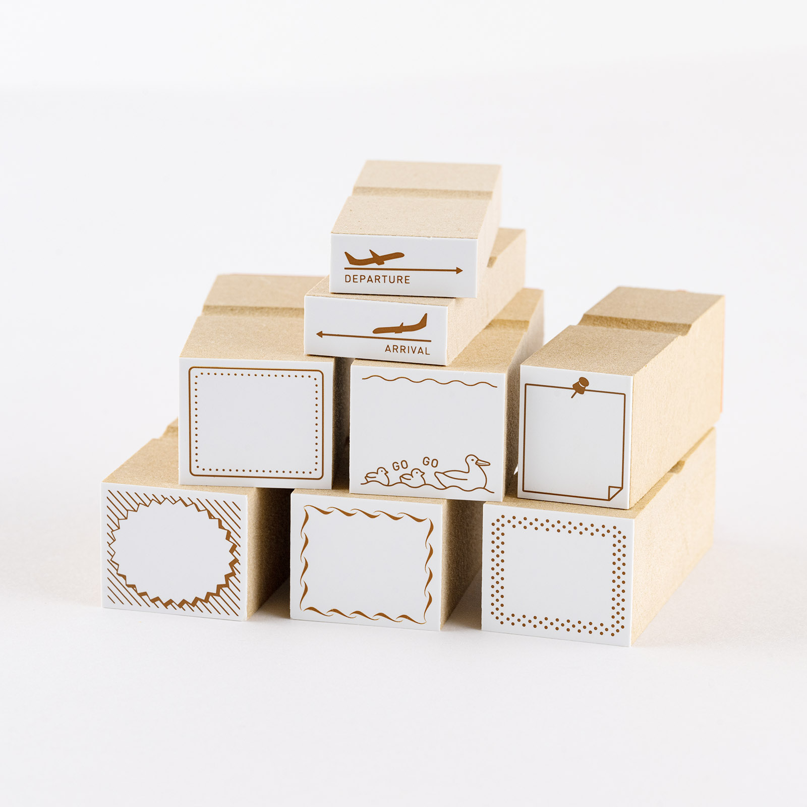 シンプルなデザインだけでなく、アヒルの親子がいそいそとお出かけしている「GO GOおでかけ」や、飛行機デザインの「トラベル(出発&到着)」など、気分を盛り上げてくれるスタンプも展開。手帳やノートのアレンジに興味がある初心者さんにも取り入れやすい、おすすめのフレームスタンプです。