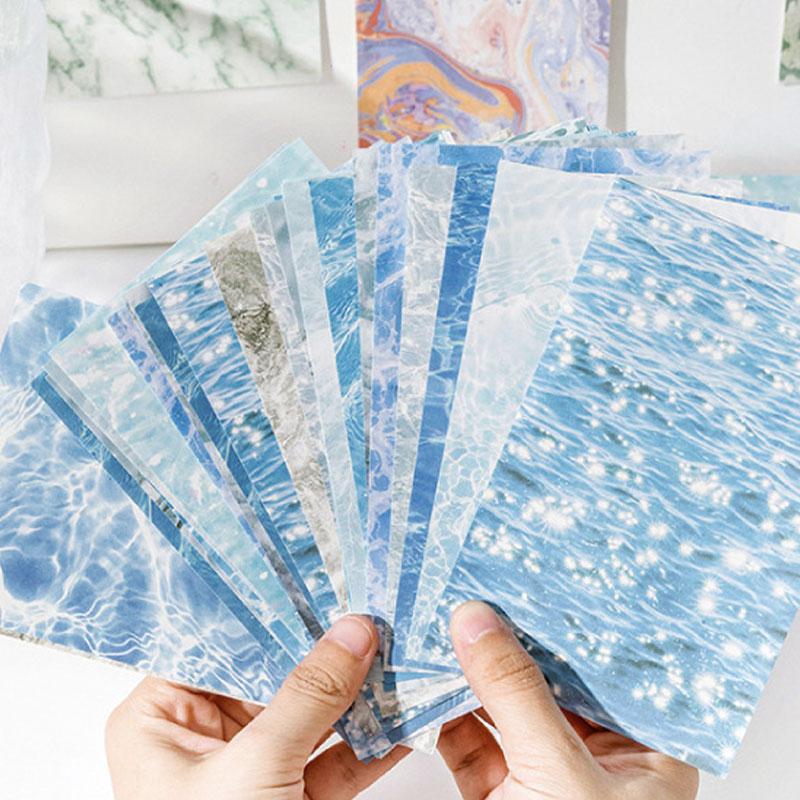 コラージュなどで使われるデザインペーパーにおいても、マーブル模様は大人気。こちらの「デザインペーパー PA336」は、風合いの異なる6種類のマーブル模様がラインナップされています。それぞれ海やヴィンテージ、ファンタジーなどといった、異なるテーマでデザインされているのが魅力。