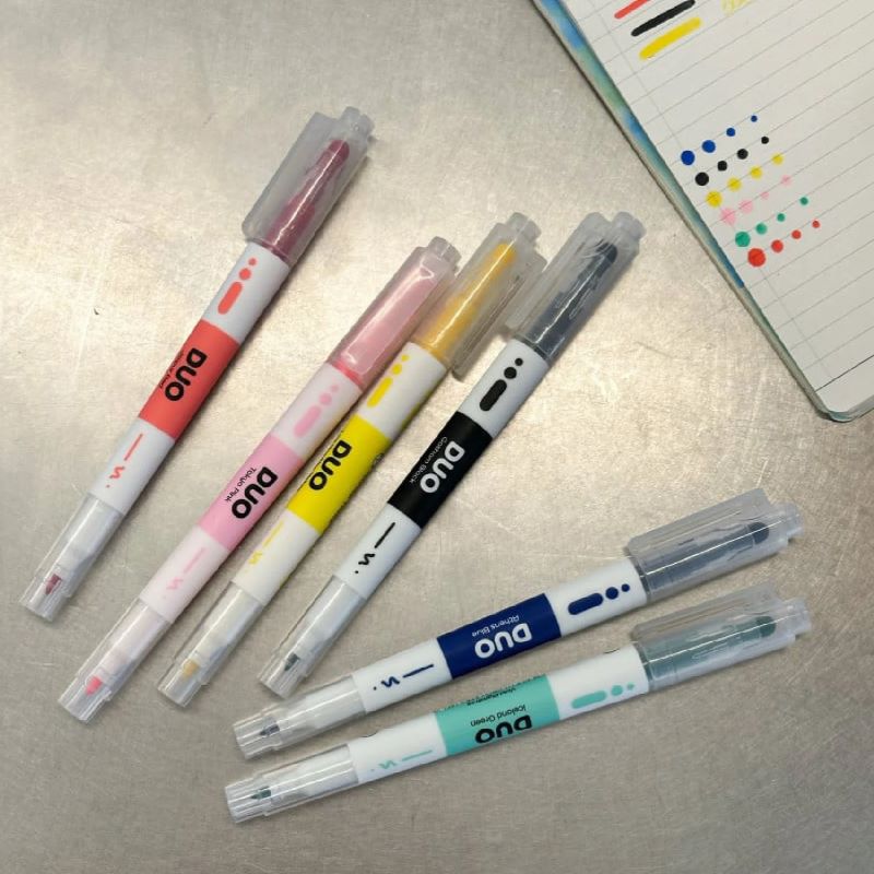丸くて太いペン先と細めのペン先を気分やシーンによって使い分けられるツインタイプ。ドットを押したらくるりとペンを回して、今度は文字を書き込むなんて使い方もばっちり決まります。