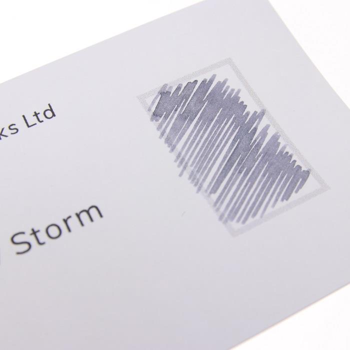 こちらの「スノーストーム」は、シルバーのラメが入ったシマーリングインクです。ボトルキャップとラメの色がおそろいになっているところに、作り手の気遣いとセンスが感じられます。