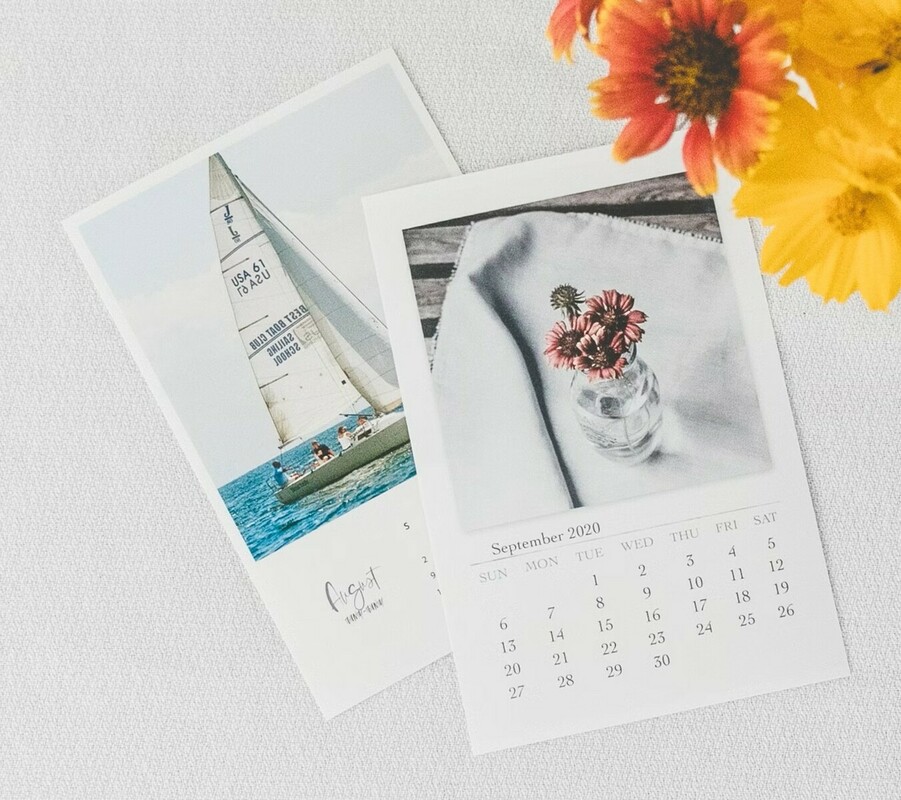 小さなカレンダーだけでなく、写真やイラストを大きく配置して、日付スペースを小さめに設けた壁掛けカレンダーも作れそう。日付部分が小さくデザインされたカレンダーは、アート作品を飾る感覚で部屋をおしゃれに見せてくれます。