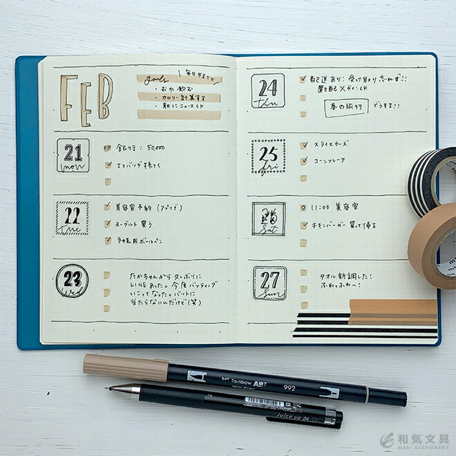 とことんシンプルなデザインだからこそ、好きなデコレーションを楽しめるのも魅力の一つ。スタンプやマスキングテープで自分らしいアレンジを楽しみましょう。