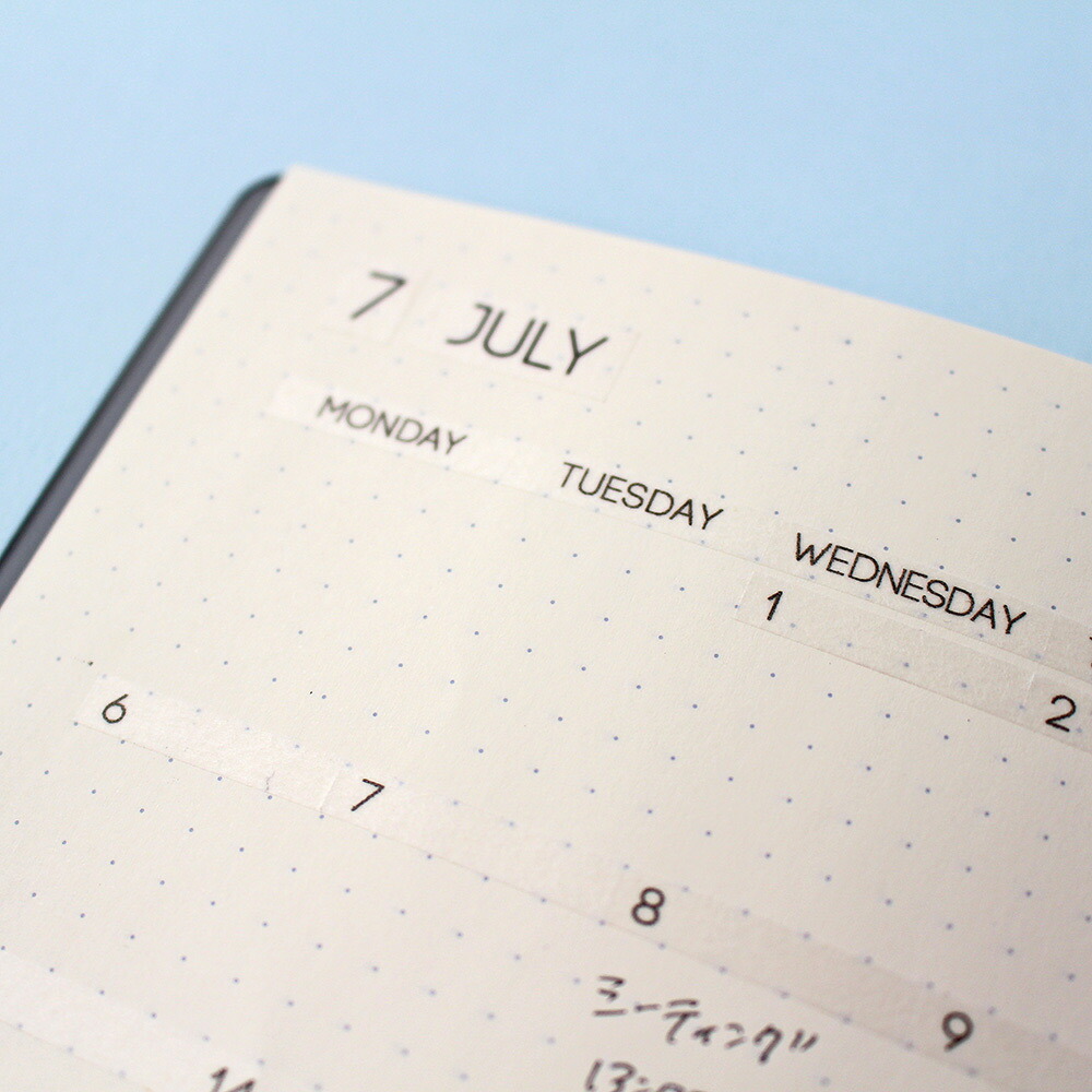 ミニマルデザインですっきり見やすい日付・曜日マスキングテープ
