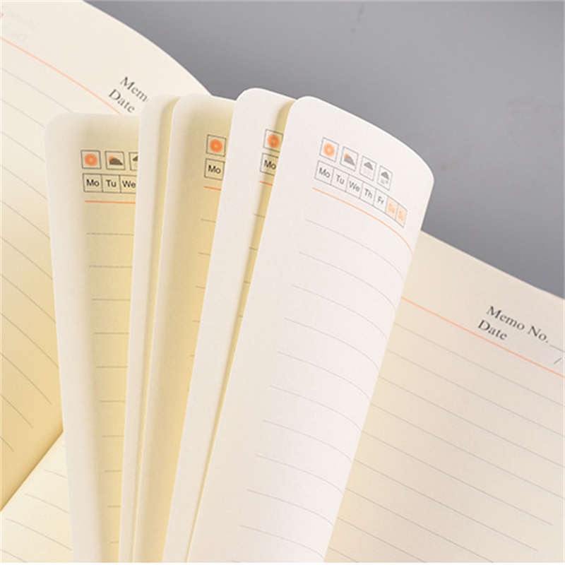 ページは日付フリータイプで、天気や曜日はマーク式でその日の状況に合わせて使えるため、ページを無駄にせず好きなタイミングで日記を付けられますよ。罫線の色が薄めにプリントされているため、ページをデコレーションしたい人にもおすすめの一冊です。