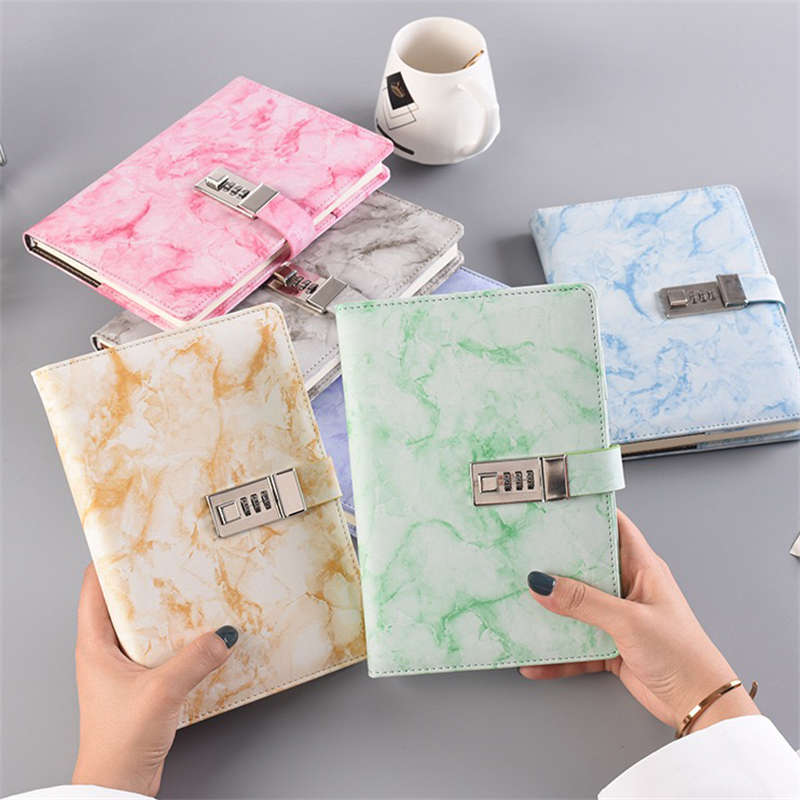 こちらは3桁のダイヤルロックを採用した鍵付き日記帳。大理石のような上品なマーブル模様の表紙が大人女子の手元を華やかに彩ります。表紙にはペンホルダーも付いているため、持ち運びにもぴったり。外出先でのんびり日記をつけられるでしょう。