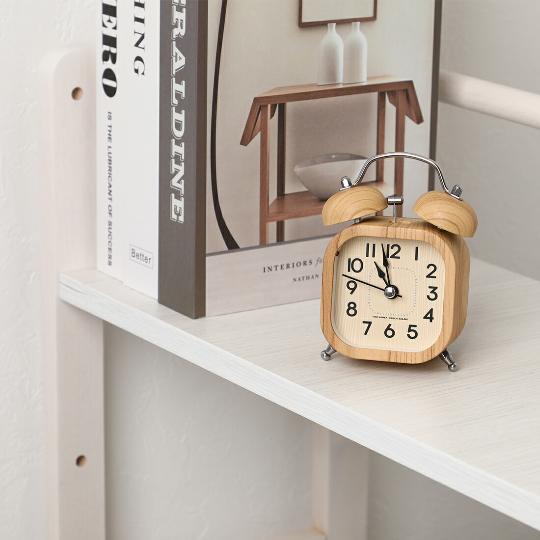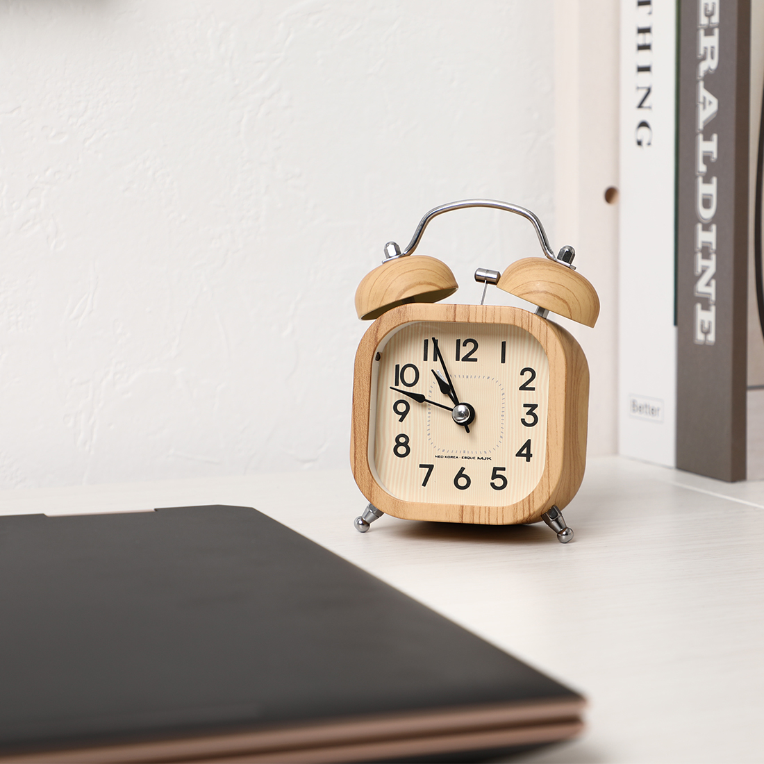 こちらは北欧風のデザインが温かい雰囲気を醸し出している、「GOLWIS(ゴルウィス)」の木目調デスク時計です。昔からある目覚まし時計のベルのついたシルエットやちょこんとついた丸く小さな脚には、レトロモダンな雰囲気もあります。
