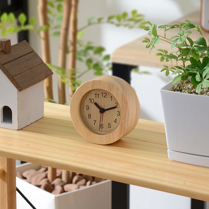 ころっとやさしいシルエット。木目調のデスク時計