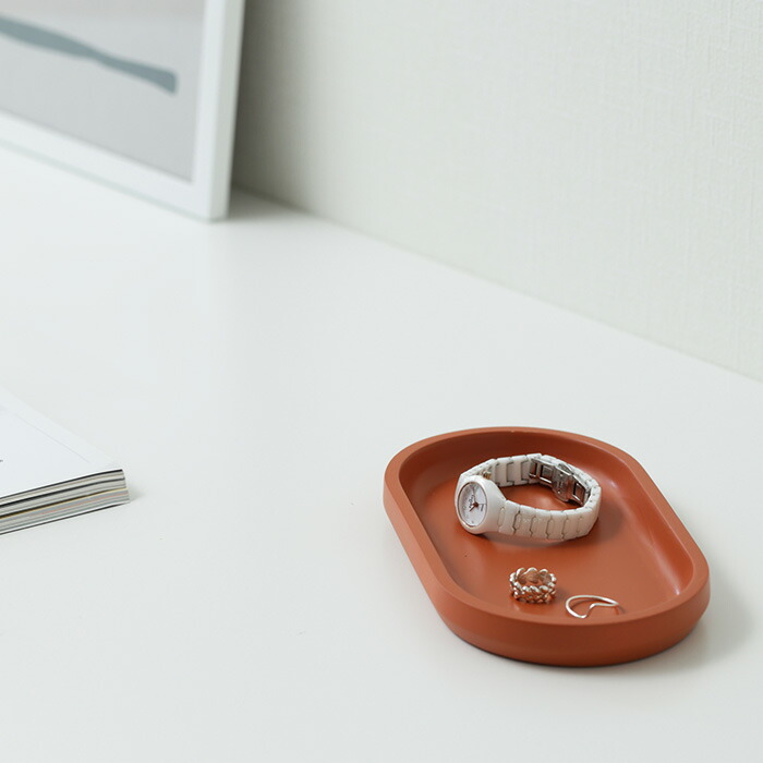 普段何気なくテーブルに置いてしまうものたちの居場所を作れるのが小物トレイのよさ。仕事用デスクや、玄関の棚、洗面台など、どこに置いても最大限の活躍をみせてくれます。適当に放置しているのではなく、しっかりとあるべき場所に置いている感が出るのがポイントです。