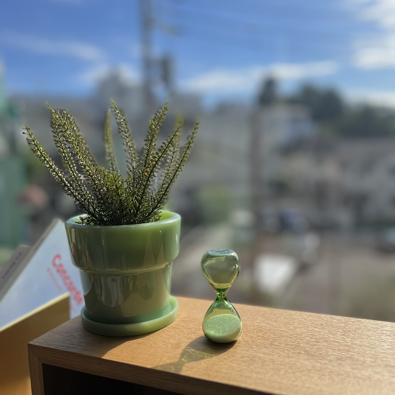 だからこそ、ときどき砂時計に頼ってみると、暮らしがより楽しくなるはず。ちょっとしたストレッチや茶葉を蒸らす時間などにぜひ使ってみてほしいところです。たまには目的なく、さらさらと落ちる砂を眺めても◎