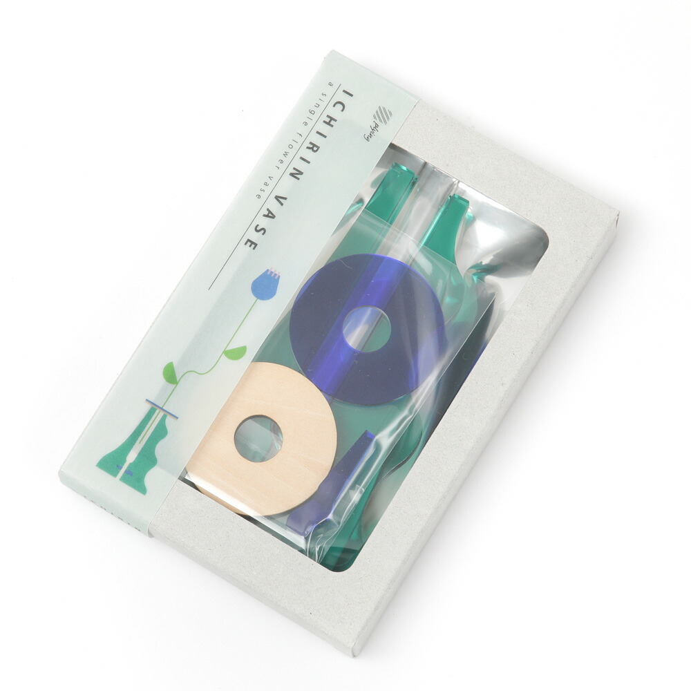 一輪挿しは6つのパーツを組み立てて自分で仕上げる仕組み。収納時にもコンパクトにできて便利です。トップにくる丸いパーツは、木とアクリル素材の2種類から選ぶか、その両方をつけて組み立てます。大きく印象が異なるので、好みに応じて選べるのが嬉しいですね。
