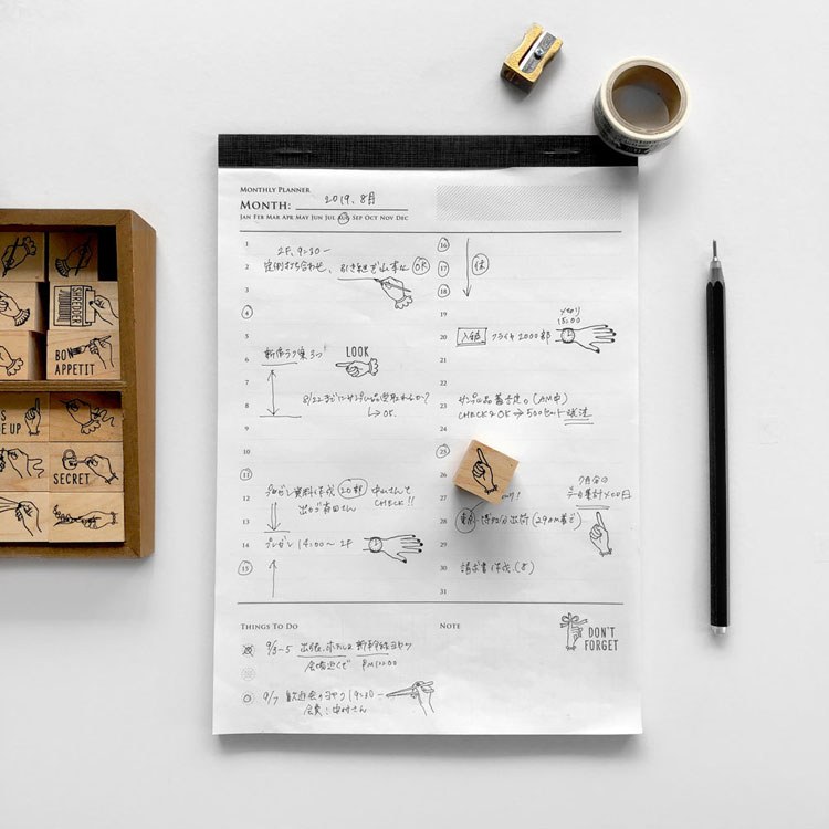 シンプルながら存在感を放つ人差し指のイラストから、「ここに注目!」という声が聞こえてくるかのよう。ワンポイントとして使えば、後でライフログを読み返したときにもパッと目につきやすくなりますよ。