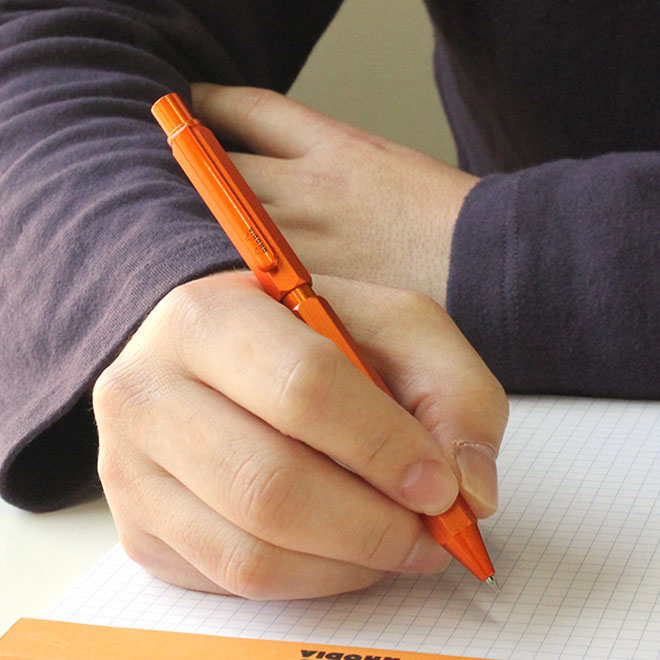 家族の誕生日に特別感のある文具を贈りたい方におすすめしたいのが、オレンジの表紙のメモ帳で知られるフランスの文具ブランド「ロディア」の多機能ペン。ロディアらしいブラックやオレンジのボディに、クリップ部分に印字されたロゴがシンプルでおしゃれなアイテムです。