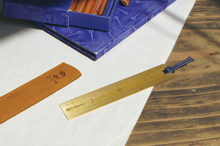 手のひらに程よい重みを感じながら、真鍮の風合いがじんわりと変わっていく様子を味わって。経年変化する定規は、自分自身の成長までも教えてくれるかのようです。