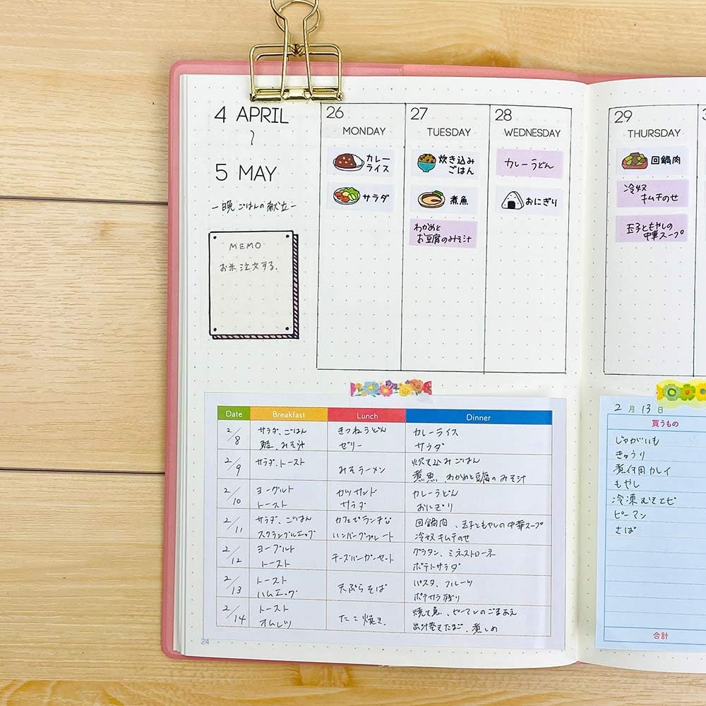こちらは、日付と朝食、昼食、夕食を記録に残しておける「ライフメモパッド」。メモ帳を切り取り好みの手帳やノートに貼って使うことによって、生活や食事の管理が便利になります。バランスの取れた献立も立てやすくなるはず。