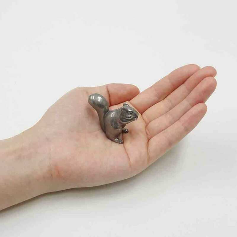 ステンレスやブロンズなどの金属を使ったメタルアートを制作する作家の村中保彦さんが手掛けるペーパーウェイト。野外彫刻から身近な文具作成までと幅広く活躍する村中さん。動物をモチーフにすることが多く、リアリティに富みながらも愛嬌たっぷりな作品を数多く創作されています。どれもユニークな魅力があり、ずっと眺めていたくなるものばかり。今回は、愛嬌たっぷりの可愛らしいリスの姿をしたペーパーウェイトのご紹介です。