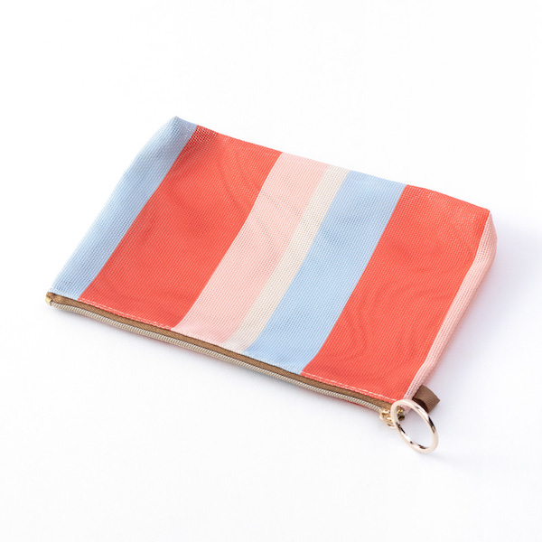 ポーチ<A6> メッシュ ストライプ柄 赤