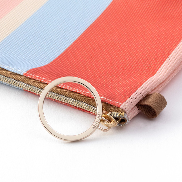 高級感のある「MIDORI」のロゴが入ったファスナーのリングは、大きくて持ちやすくフックなどにも引っ掛けて使える優れもの。ポーチ全体のアクセントにもなっていて、素敵ですよね。気分が上がる彩り豊かなストライプ柄のポーチを携えて、どこかへ出かけてみませんか。