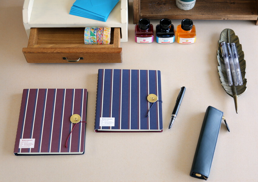 上品で落ち着いたストライプ柄と、ゴールドカラーの丸留めが印象的なこちらのノートは、ステーショナリーブランド「kleid(クレイド)」のもの。「kleid」とはドイツ語で「服」や「ドレス」の意味であり、アパレルデザインと機能性のどちらも追及したノートなんです。
