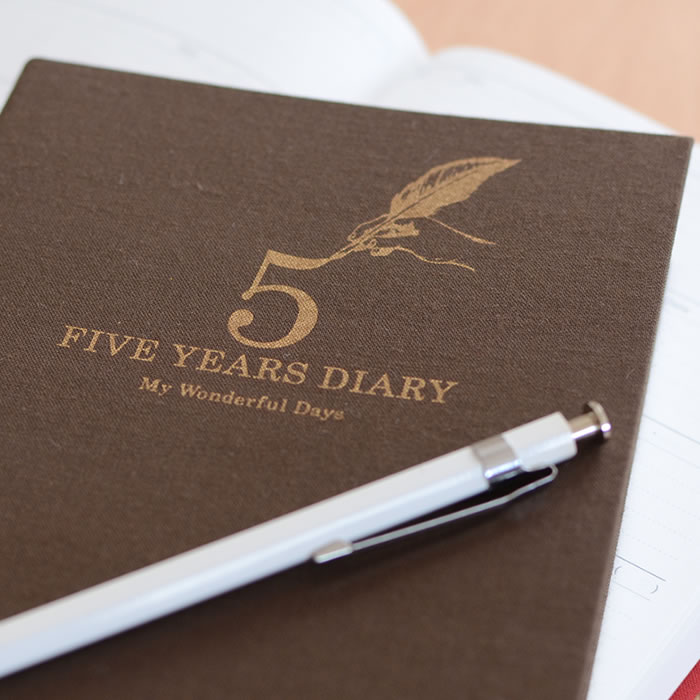 どんな門出のシーンにも似合う、5年連用日記帳はいかがですか。1ページに1日×5年分を記すことができ、日付フリータイプなので、いつでも思い立った時に書き始めることができますよ。ぱっと開いた時に、同じ日の違う年に何をしていたかを見ると、思いがけない発見があるかも。スリムタイプで持ち運びやすいことや、1日5行のちょうど良いスペースは、日記を書くことを日々の習慣にしやすくするポイントです。