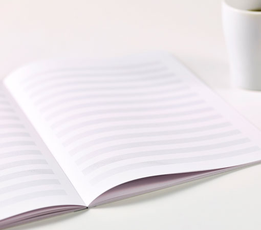 「mahora Lavender」は、その名前の通りラベンダー色の用紙が採用されています。これは通常の白いノート用紙に比べ、光の反射率を下げ、眩しさを軽減してくれます。また、罫線にはあみかけの帯。この帯によって、いつの間にか書いている行が変わってしまうというミスが防げるのです。