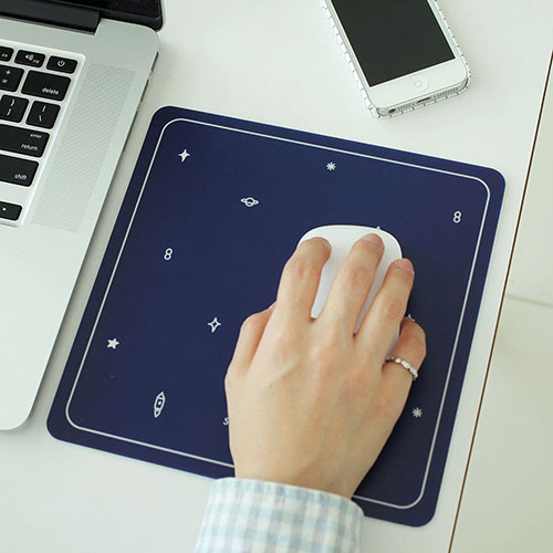 デザインは、ネイビーに白の星や惑星が浮かぶ「Universe」、淡いピンクとグレーが女性らしい「Pink Gray」、スタイリッシュなラインが入った「Note Pad」の3種類。お好みのマウスパッドを手元に置いて、PC周りをおしゃれにイメージチェンジしてみてはいかが。